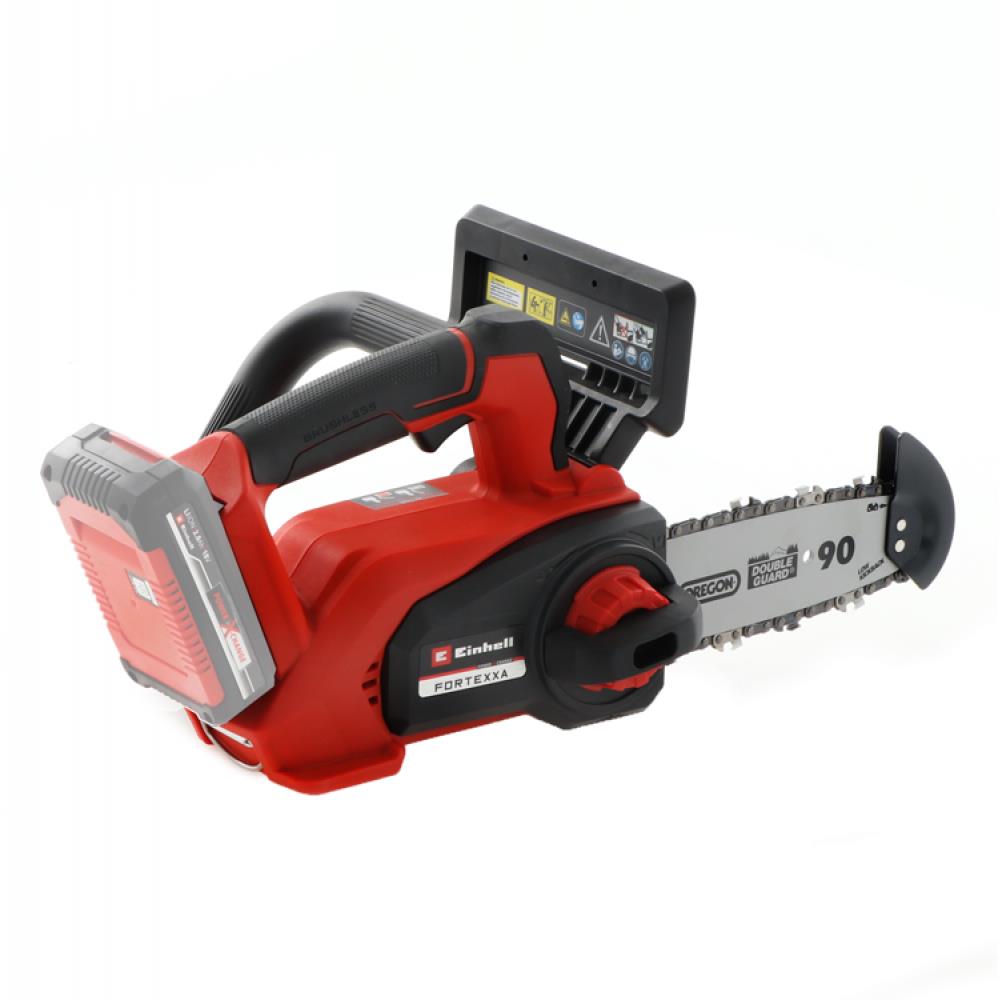 OREGON kalitesinde bıçak ve zincirle donatılmış Einhell el tipi akülü elektrikli testere FORTEXXA 18/20 TH, dayanıklılık ve temiz kesme sonuçlarıyla etkileyicidir. Hem zinciri değiştirmek hem de optimum zincir gerginliğini ayarlamak kolaydır ve herhangi bir alet gerektirmez. Bıçağın ucundaki uç koruması, ahşaba nüfuz etmesini önlediği için yüksek güvenlik seviyeleri sağlar. Bu, geri tepme olasılığını en aza indirir.