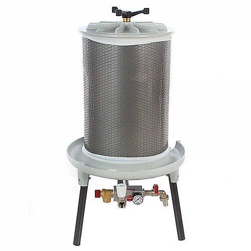 Grifo hidrolik balonlu pres, su gücüyle mükemmel bir şekilde çalışır. En kaliteli meyve suyunu elde etmenin yolu oldukça basitleşmiştir. İtalyan malıdır. Şebeke suyu olarak kabul edilen bahçe hortumundan gelen su basıncı yeterlidir. Gelen bu su, kauçuk bir diyaframı genişletir ve zemin malzemesini kafes sepete doğru sıkıştırır. İster meyve isterseniz sebze hatta bal peteği dahi sıkmanız oldukça hızlıdır. Kısa süreli olan bu döngü sayesinde az posa, çok su elde edeceksiniz. Balonlu pres makineleri, kaliteli paslanmaz çelikten ve gıda temasına uygun balondan oluşmalıdır.
