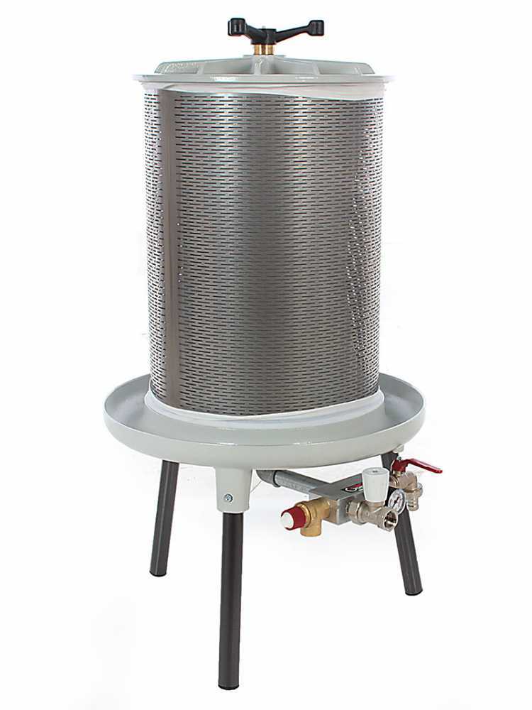 Su, meyveyi duvara dayayan ve sürekli baskı yapan yiyecek teması için onaylanmış doğal bir lastik tabakayı doldurur. Ürünle birlikte verilen bir tuval filtre, meyve suyunun delikleri tıkamadan çıkmasına izin verir. İşlem sırasında herhangi bir dökülme, tedarik edilen torbaya toplanır. Bu işlemle meyvenin tüm besleyici, antioksidanları ve fiziksel özelliklerini korursunuz.