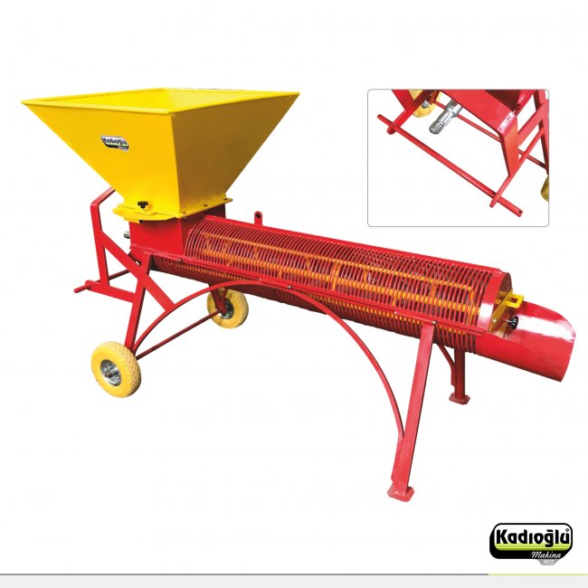 Kadıoğlu badem soyma makinesi kullanım ve bakım kolaylığı sağlamak için açık kafes tasarımına sahiptir. Kauçuk ve metal sıyırıcılar sayesinde iç bademi kabuğundan ayırır. Emsallerinden farklı olarak kauçuk sıyırıcılar aşınsa dahi metal sıyırıcılar görev yapmaya devam eder... Traktör gücü ile çalışan badem soyma makinesi tüm marka ve model traktörler ile çalışabilmektedir.