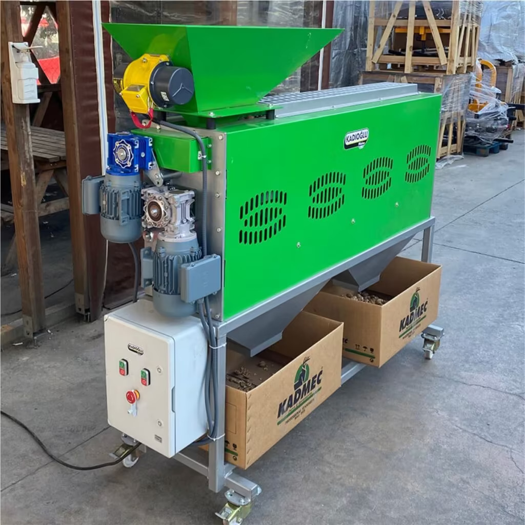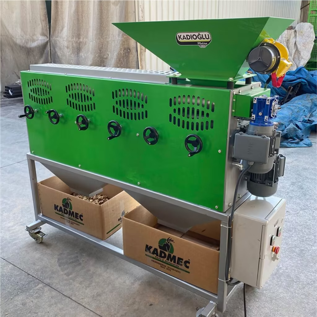 Kadıoğlu CKK200 Ceviz kırma makinesi mahsülü kırmadan önce boylarına göre ayırmaya yarayan boylama silindirine sahiptir. Bu sayede her kırıcı hazneye o haznenin maksimum verimle kırabileceği ebatta mahsül düşer ve kırma işlemi gerçekleşir.