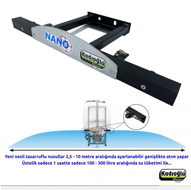 Tüm marka ve model ilaçlama tanklarına monte edilebilen Kadıoğlu NANO Ot İlaçlama Aparatı ile 4 - 10 metre ayarlanabilir genişlikte homojen bir şekilde ot ilacı (herbisit) uygulaması yapılır.