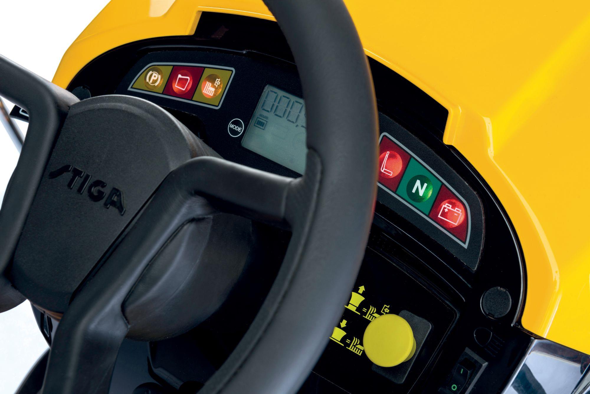 Stiga Estate 7122 HWS büyük bahçeler için uygundur. Güçlü ve çift silindirli 11.9 kW Briggs & Stratton motoru ile çalışan bu traktör, pedalla çalıştırılan, hidrostatik transmisyona sahiptir ve 122 cm ikiz kesim döşeme tabanı, cırt cırtlı bıçakları, dayanıklı tekerlekleri, 30'dan 30'a kadar 7 kesme yüksekliği ayarı ile donatılmıştır. 90 mm ve bıçakların elektromanyetik olarak angajmanı. 320 L arka çim toplayıcıya kırpma toplayıp toplamayacağınıza mı yoksa malç eklentisini takarak Stiga Multiplip işlevini gerçekleştirmeye mi karar veriyorsunuz. Estate 7122 HWS, Stiga yumuşak kavrama direksiyon simidi, kol dayamalı ve yüksek sırt desteği ile konfor koltuğu, ön far ön LED lambaları, çalışma parametrelerini izlemek için ekranı olan gelişmiş bir gösterge tablosu ve arzu edilen sabit hız. Pil şarj aleti, ön tampon, malç seti aksamı içerir.